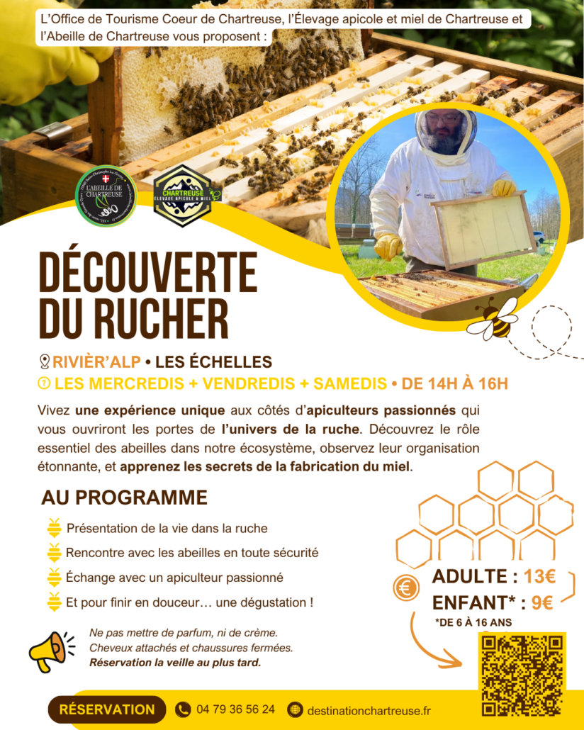 L’Office de Tourisme Cœur de Chartreuse, L’abeille De Chartreuse et l’Élevage Apicole et Miel de Chartreuse, vous invitent à vivre une expérience unique au plus près des ruches.